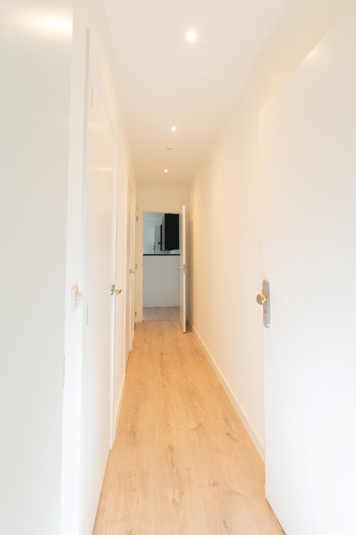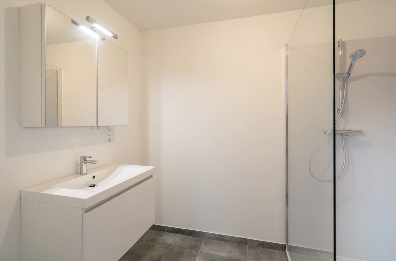 Inkomhal, toilet, berging, woonkamer, tuin of terras, keuken, eetkamer, 1 slaapkamer, badkamer met inloop douche, toilet en lavabo waarvan alles nieuw is en een kelderberging.
