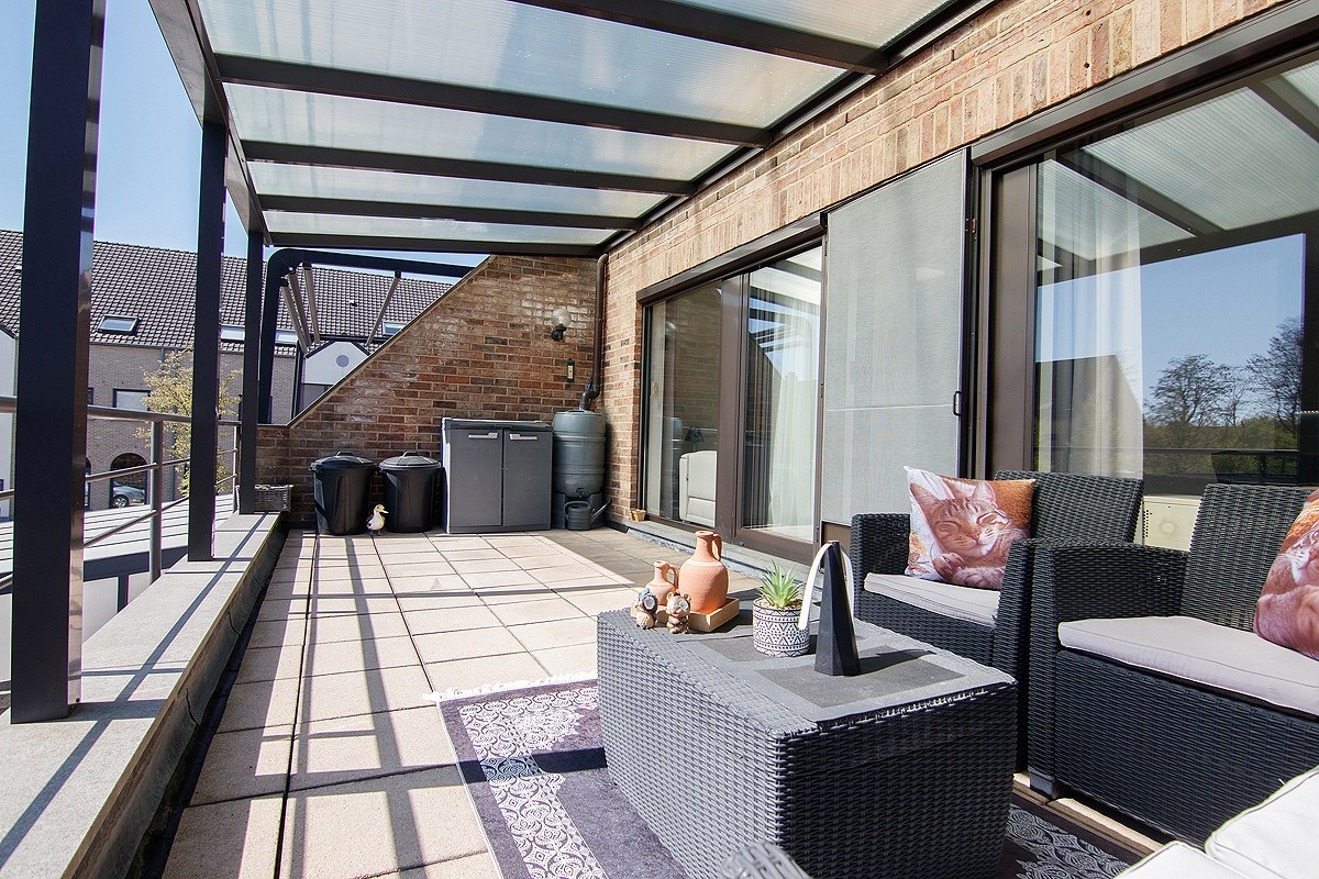 Een absolute troef is het grote terras aan achterzijde, ideaal om op elk moment van de dag van zon en buitenruimte te genieten en zalige rust doch in centrum Lommel.