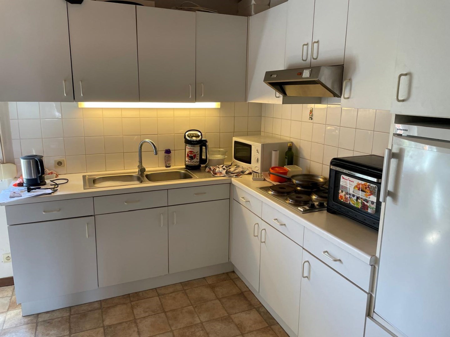 Dit is ingericht als volgt : op de eerste verdieping is er een open keuken met aansluitend een woonkamer en een badkamer.