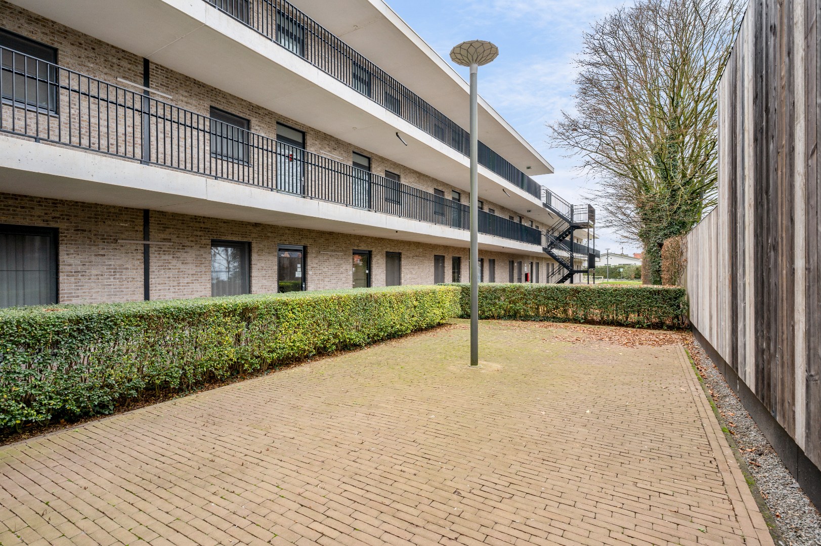 Het appartement (94m²) is vlot toegankelijk via lift of trap, beschikt over een aparte inkomdeur en maakt deel uit van Residentie Den Eik, waar bewoners en bezoekers gebruik kunnen maken van een aangename gemeenschappelijke ruimte.