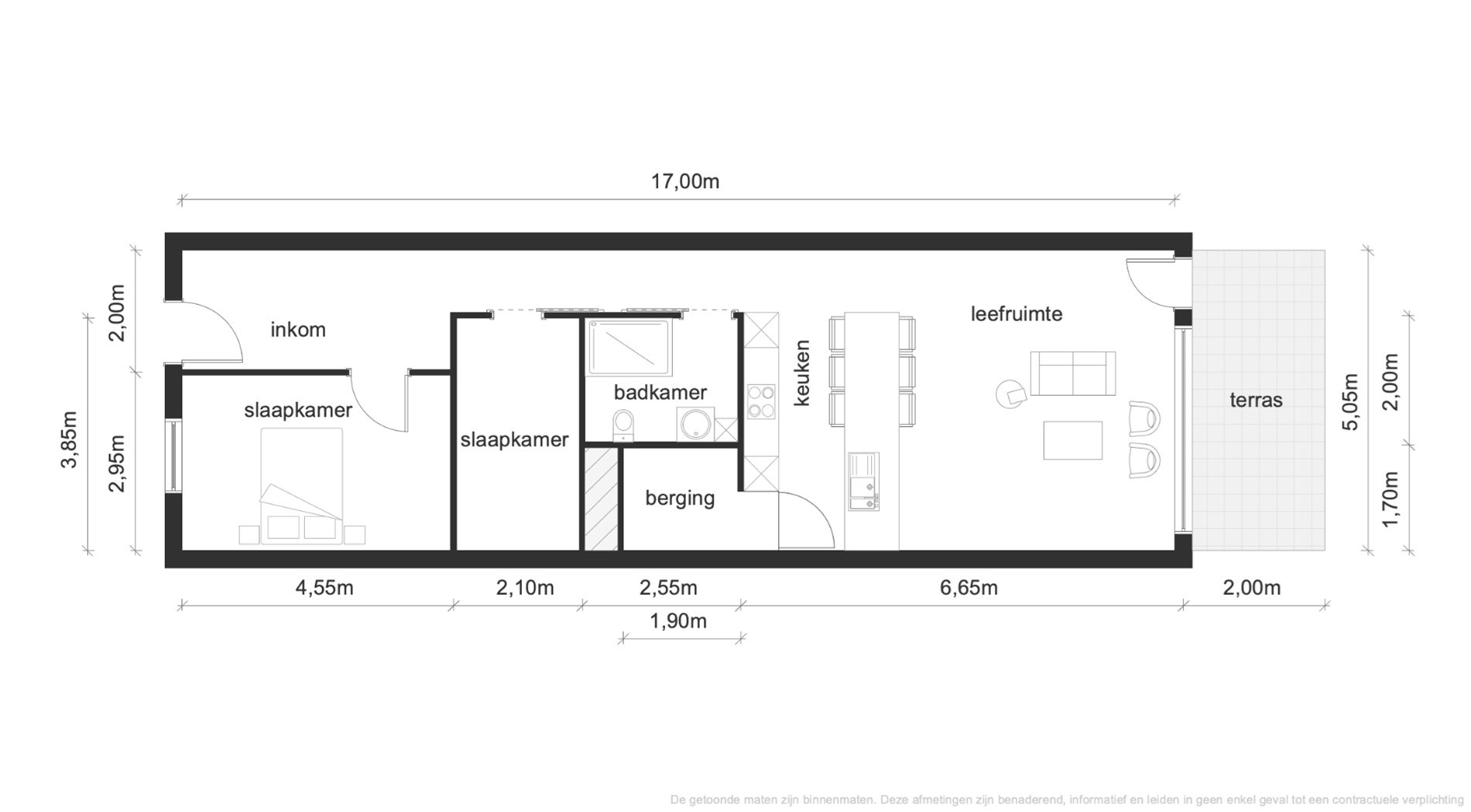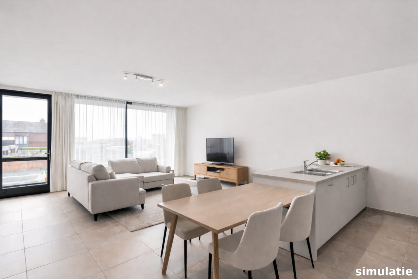 De woonunit is afgewerkt met modern comfort en omvat een lichtrijke leefruimte met ... toegang tot een overdekt terras van 10 m², een ingerichte keuken, twee volwaardige slaapkamers, een badkamer met inloopdouche en een praktische wasplaats/berging.
