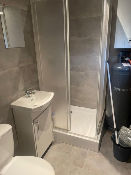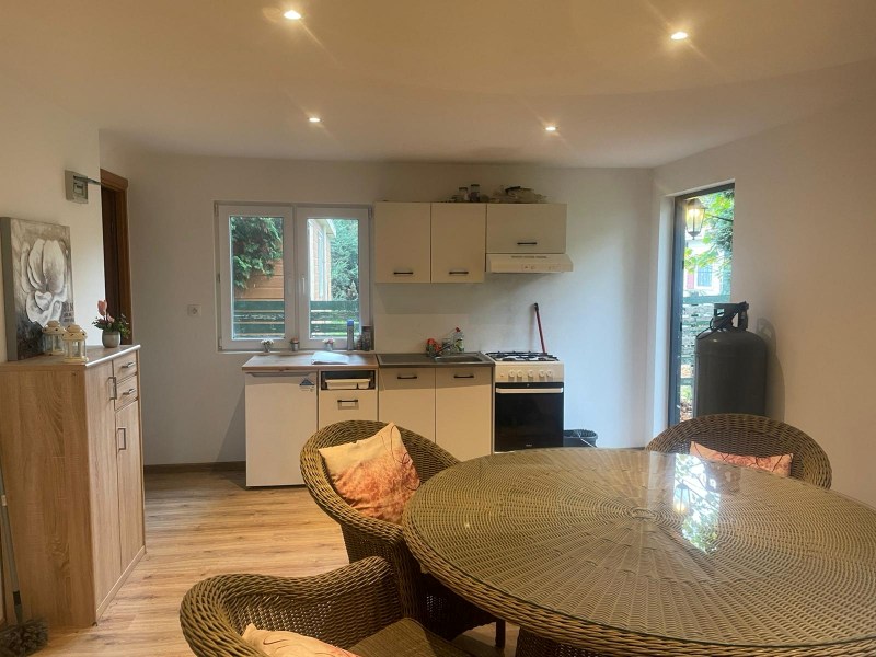 De vakantiewoning heeft een leefkamer met open keuken, badkamer en 2 slaapkamers