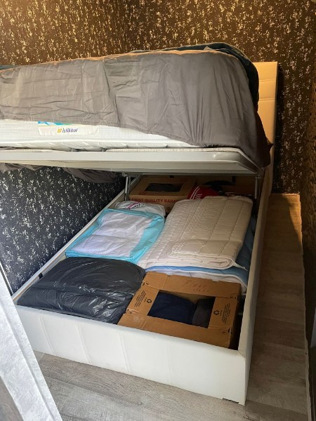 De woning heeft een leefruimte, open keuken met elektrische apparaten, badkamer en 2 slaapkamers.
