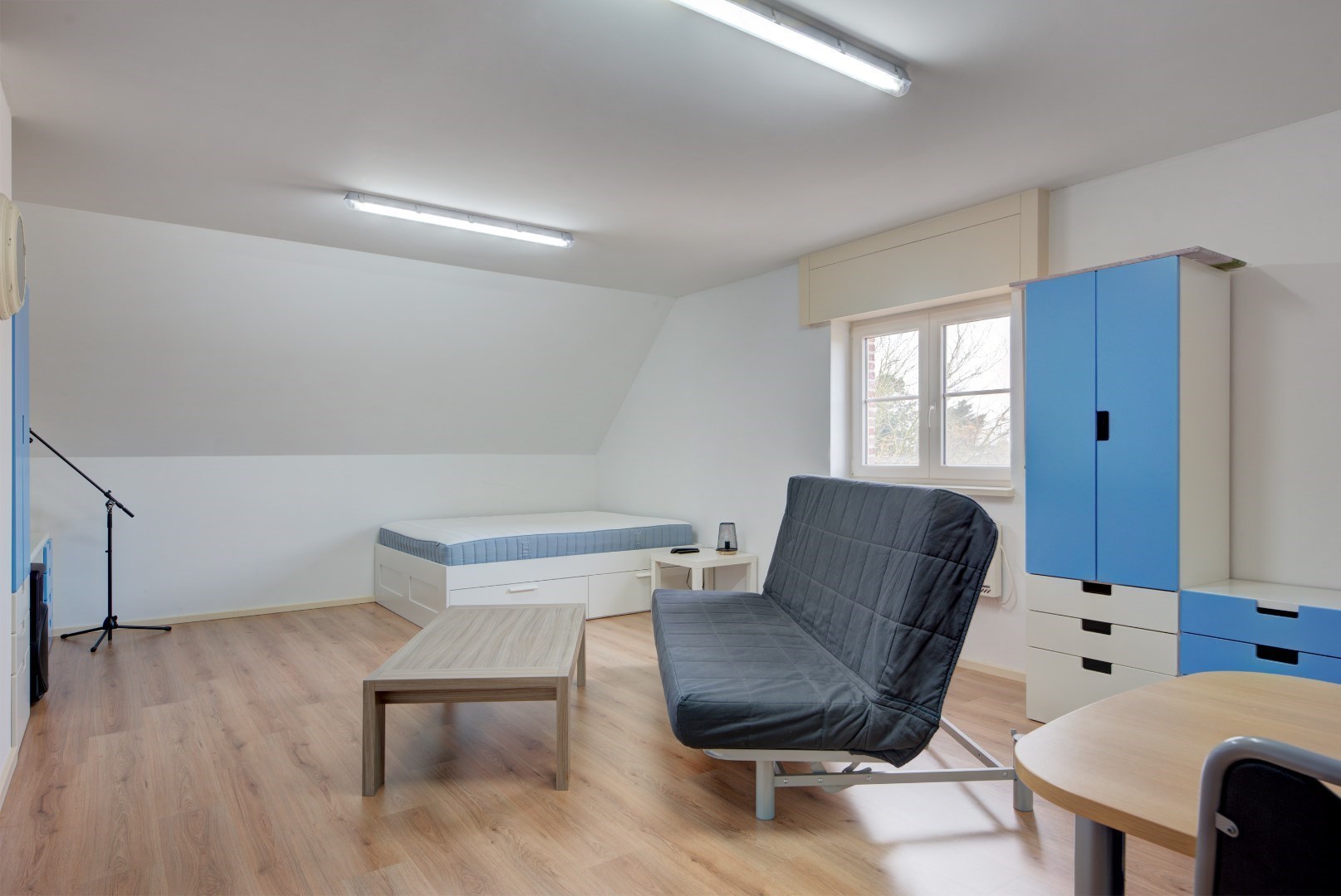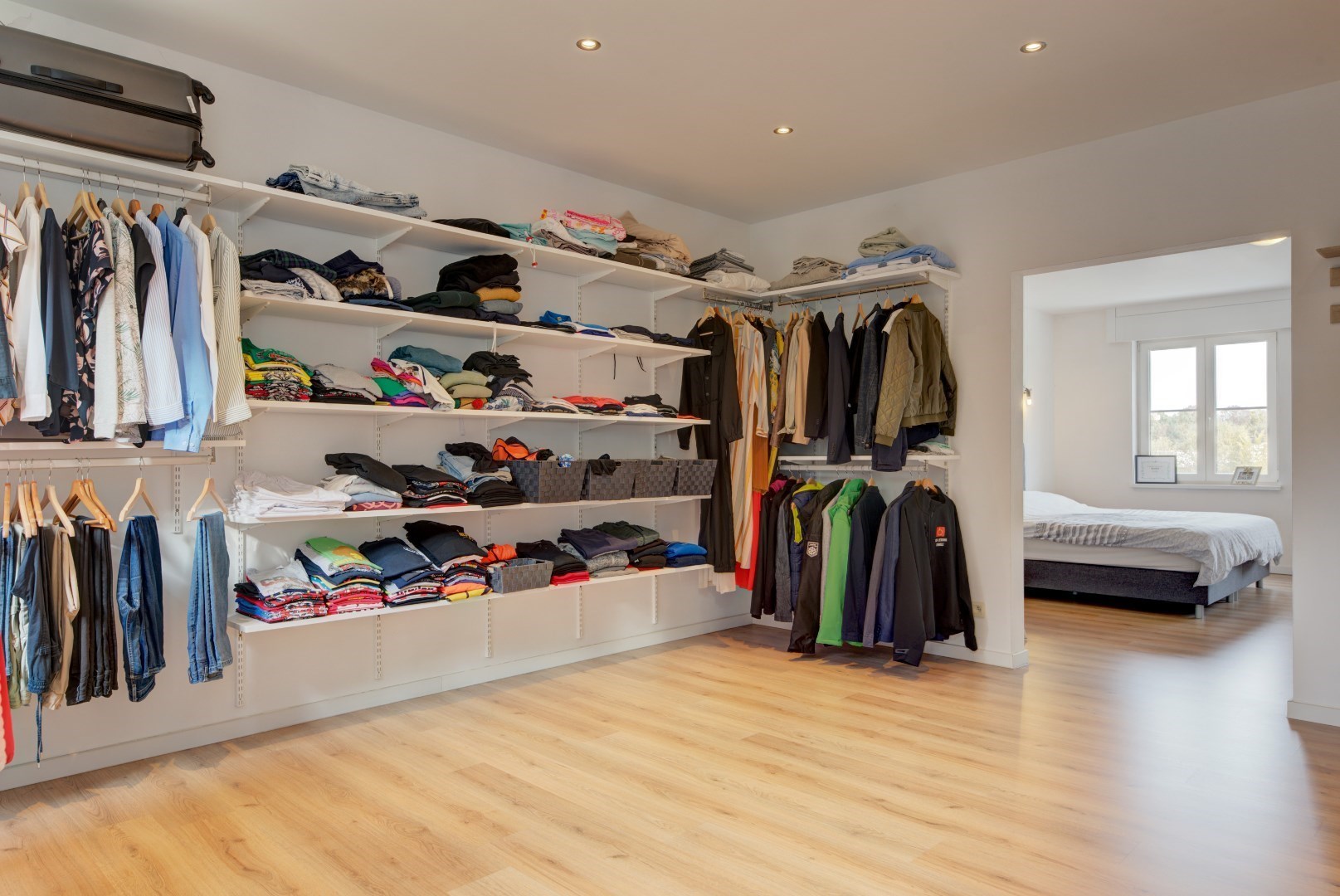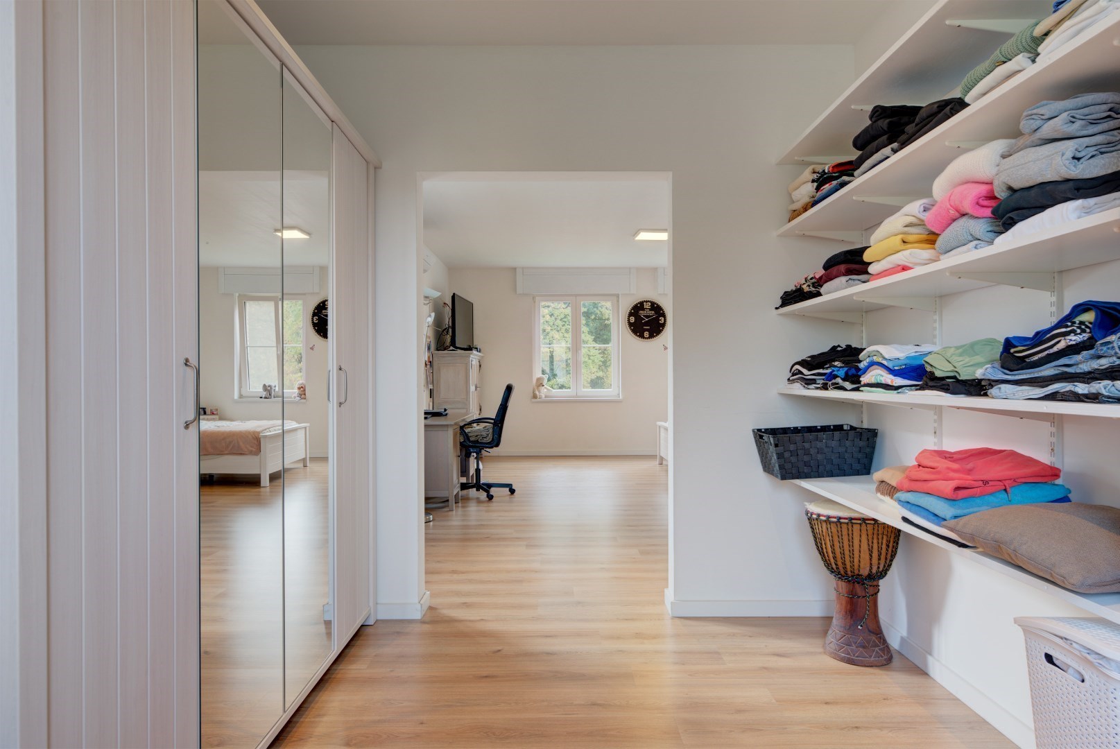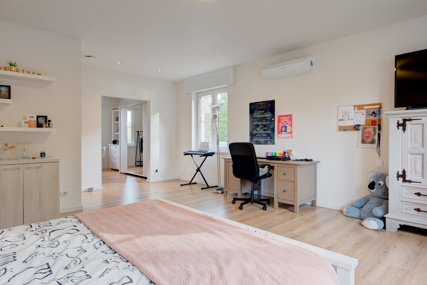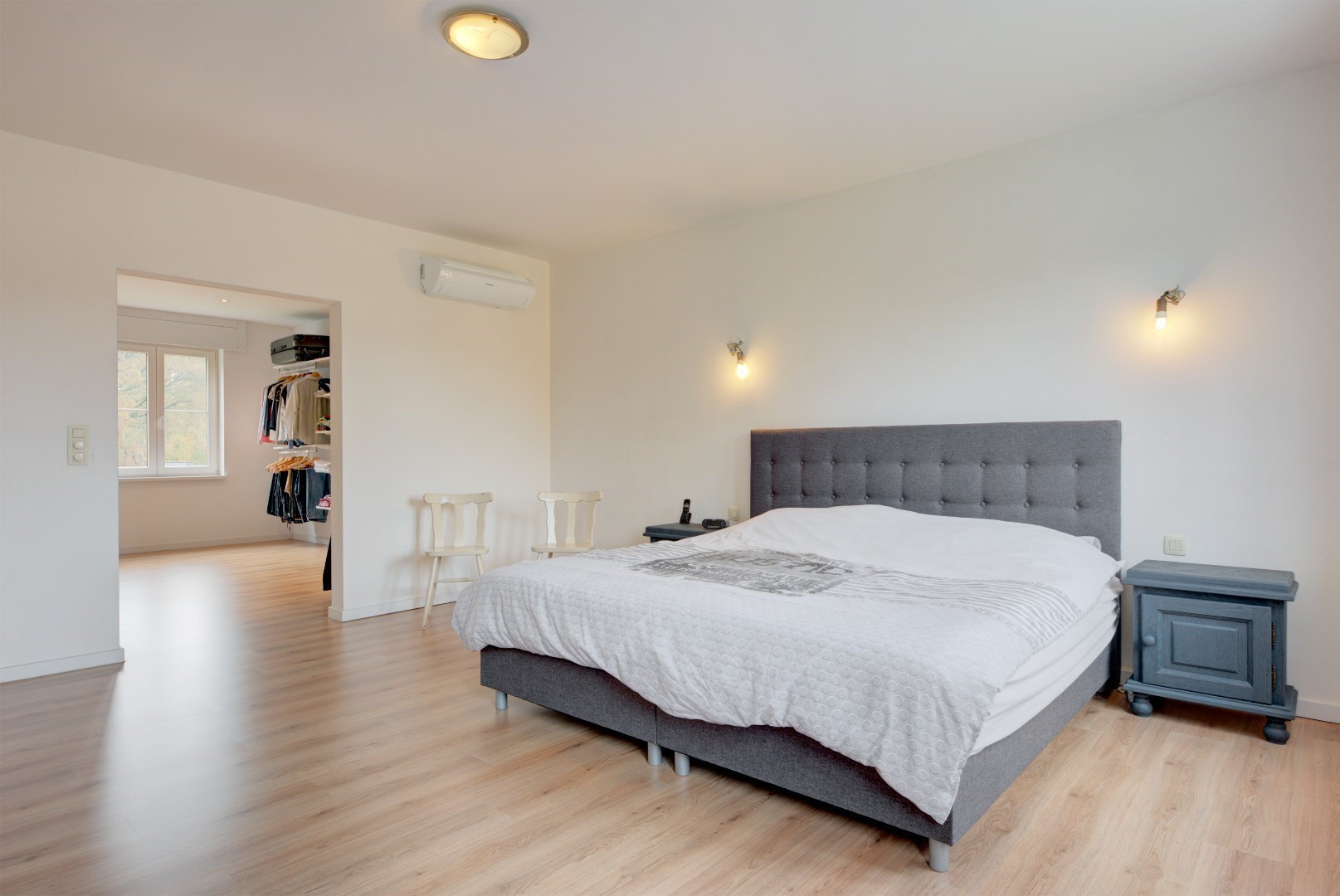 We betreden deze woning via een centrale inkomhal met gastentoilet en vestiaire. Vanuit de inkomhal hebben we toegang tot de keuken en leefruimte. Deze hebben beide zeer veel lichtinval?