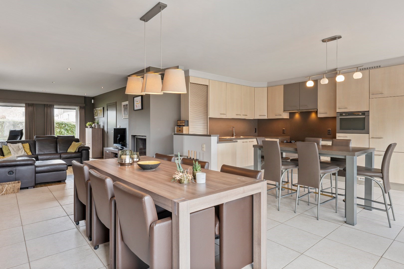 In de keuken zijn alle toestellen voorzien zoals afwasmachine, combioven, gasvuur, dubbele spoelbak ijskast, dampkap.