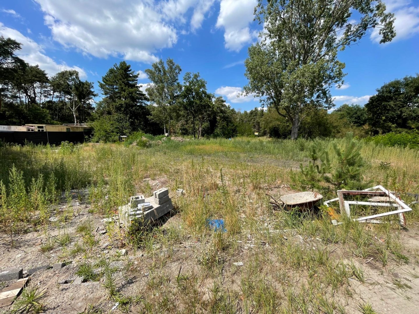 Perceel van ca. 3.000 m² in recreatiegebied, grenzend aan bos en meer.